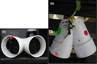 pipes. Garden Pea seedlings were planted in pots shaped like an upside-down Y,